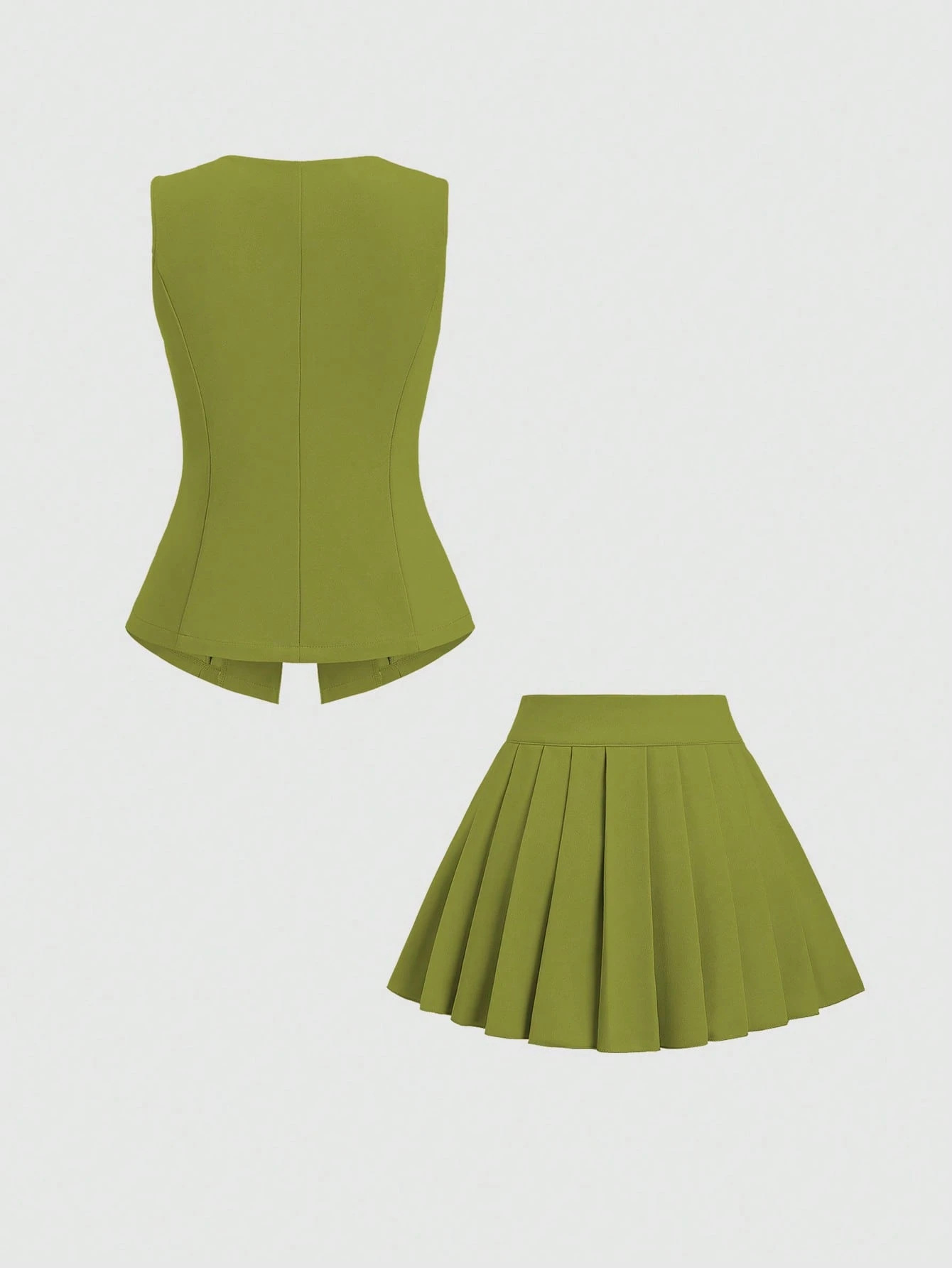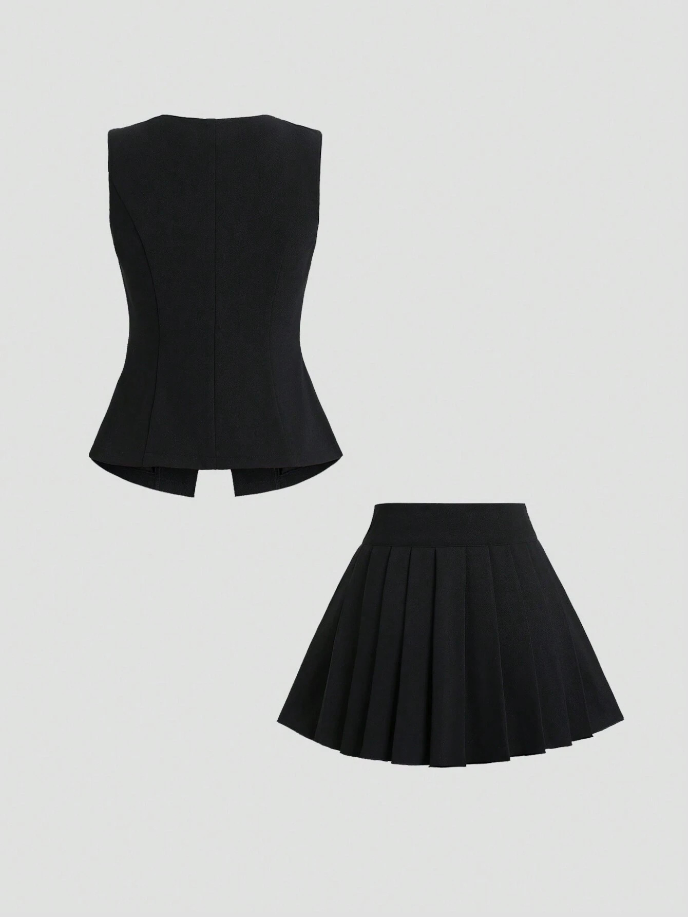 Two-Piece Set: Coordinated sleeveless vest and short skirt combination
