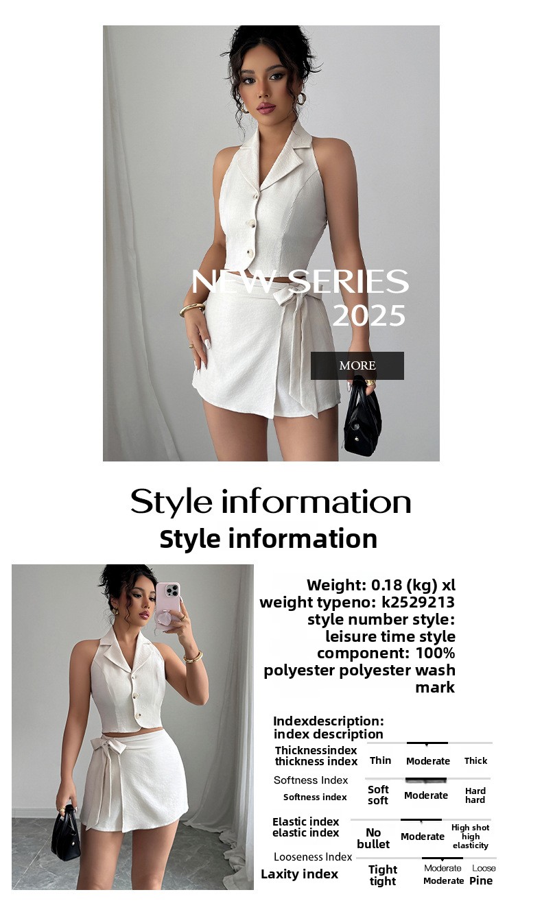 Elegant Design: Pure color vest and short skirt set for a sophisticated look.